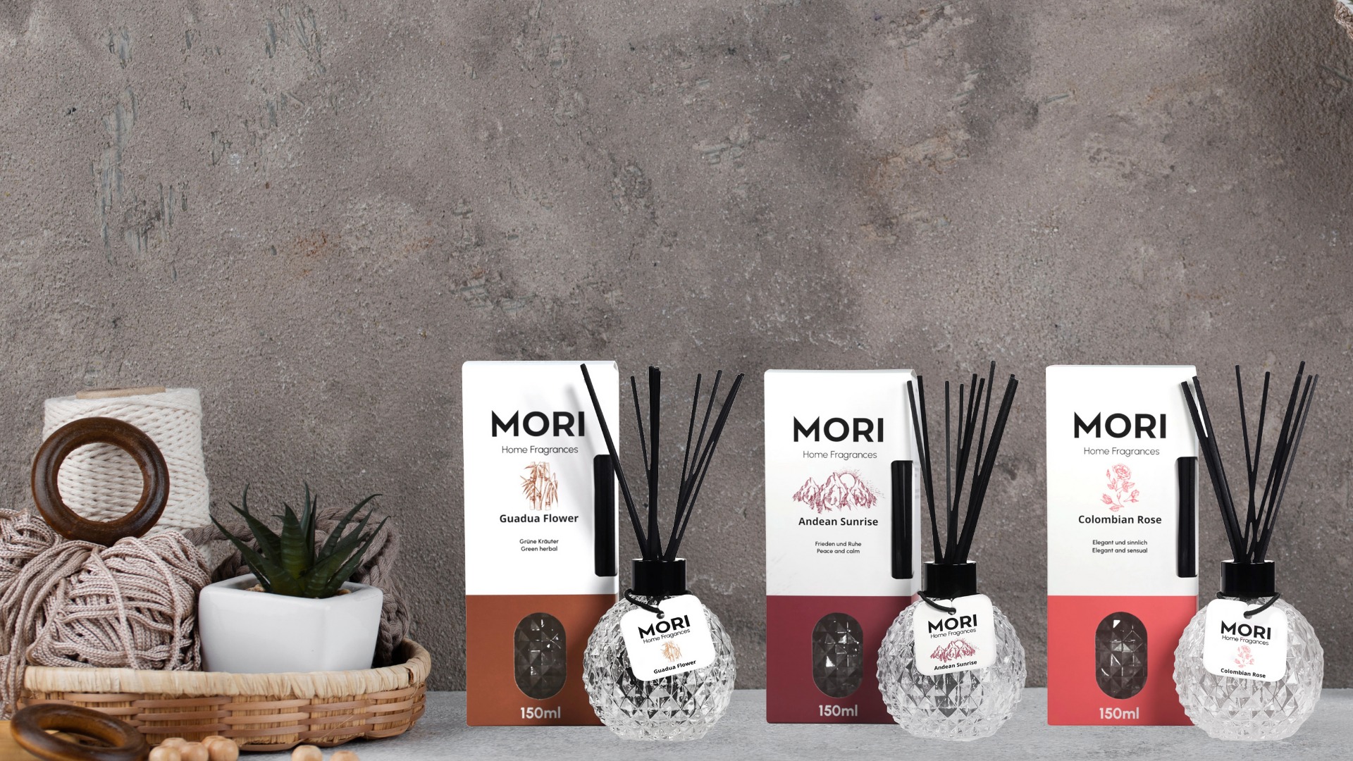 Mori is a brand dedicated to creating a refined and welcoming atmosphere at home, through an exclusive collection of room fragrances inspired by Colombian nature. Unique scents such as Amazon River, Andean Sunrise, Colombian Rose, Guadua Flower, Pacific Breeze, and Pure Amazon Nature evoke exotic landscapes and bring a touch of freshness and relaxation to any space. Mori products are ideal for the living room, bedroom, or kitchen, designed to turn the ambiance into a genuine sensory experience.