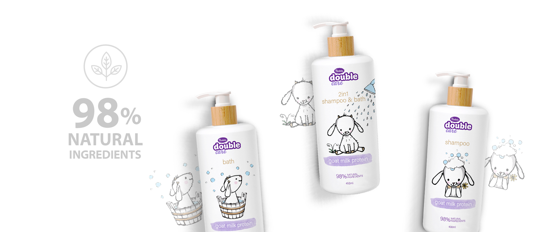 The Double Care range from Violeta is dedicated to baby care. Shampoo and shower gel dermatologically tested to protect babies’ sensitive skin and provide optimal daily comfort.